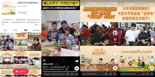 #声音里的孝心 抖音话题鼓励用户以真诚的告白、温暖的歌声等方式投稿,表达对长辈的感恩,让孝心在声波中传递。截至目前,话题播放量已突破1100万。